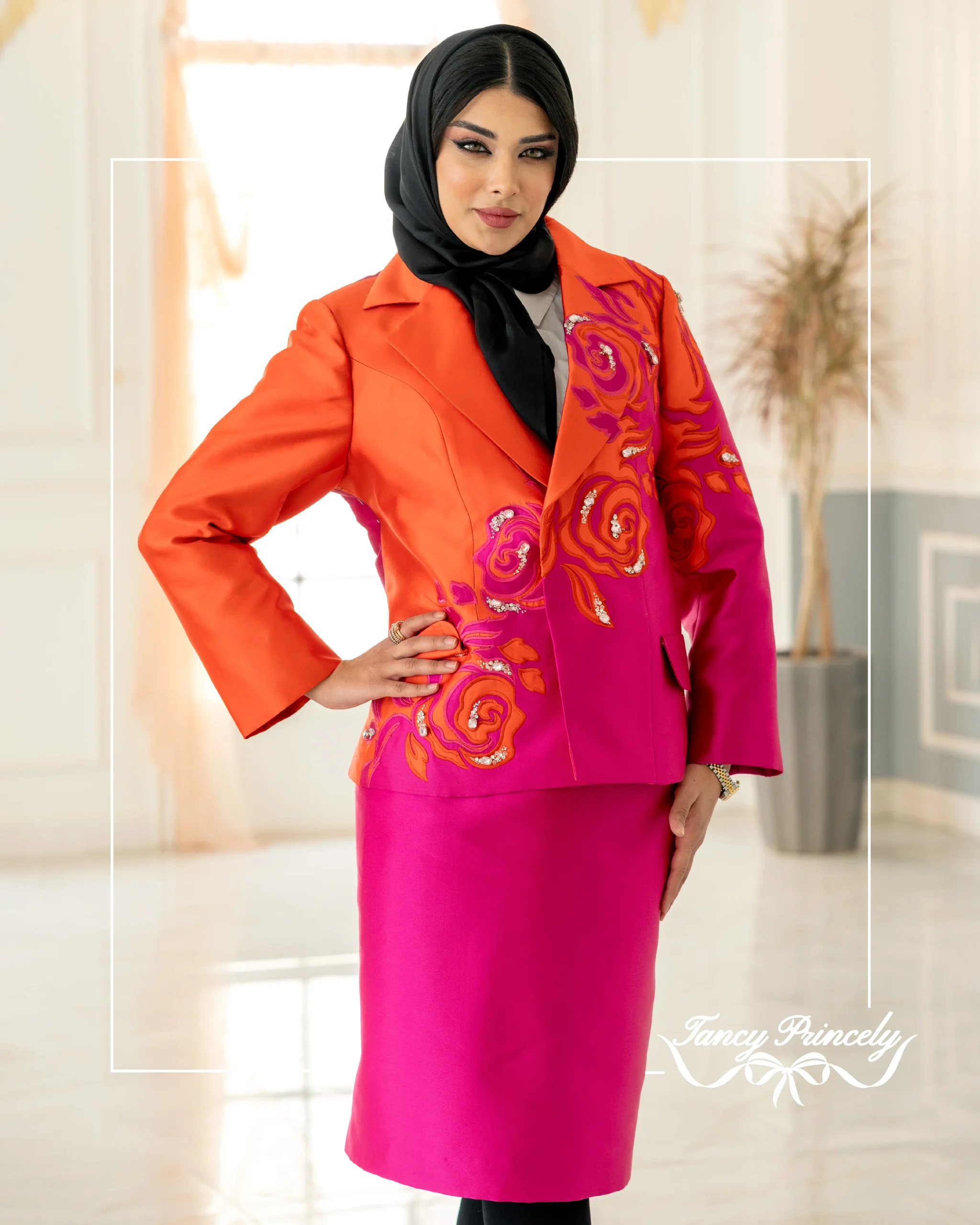 کت و دامن والریا تکنیک پارچه سازی همراه با جواهر دوزی نفیس