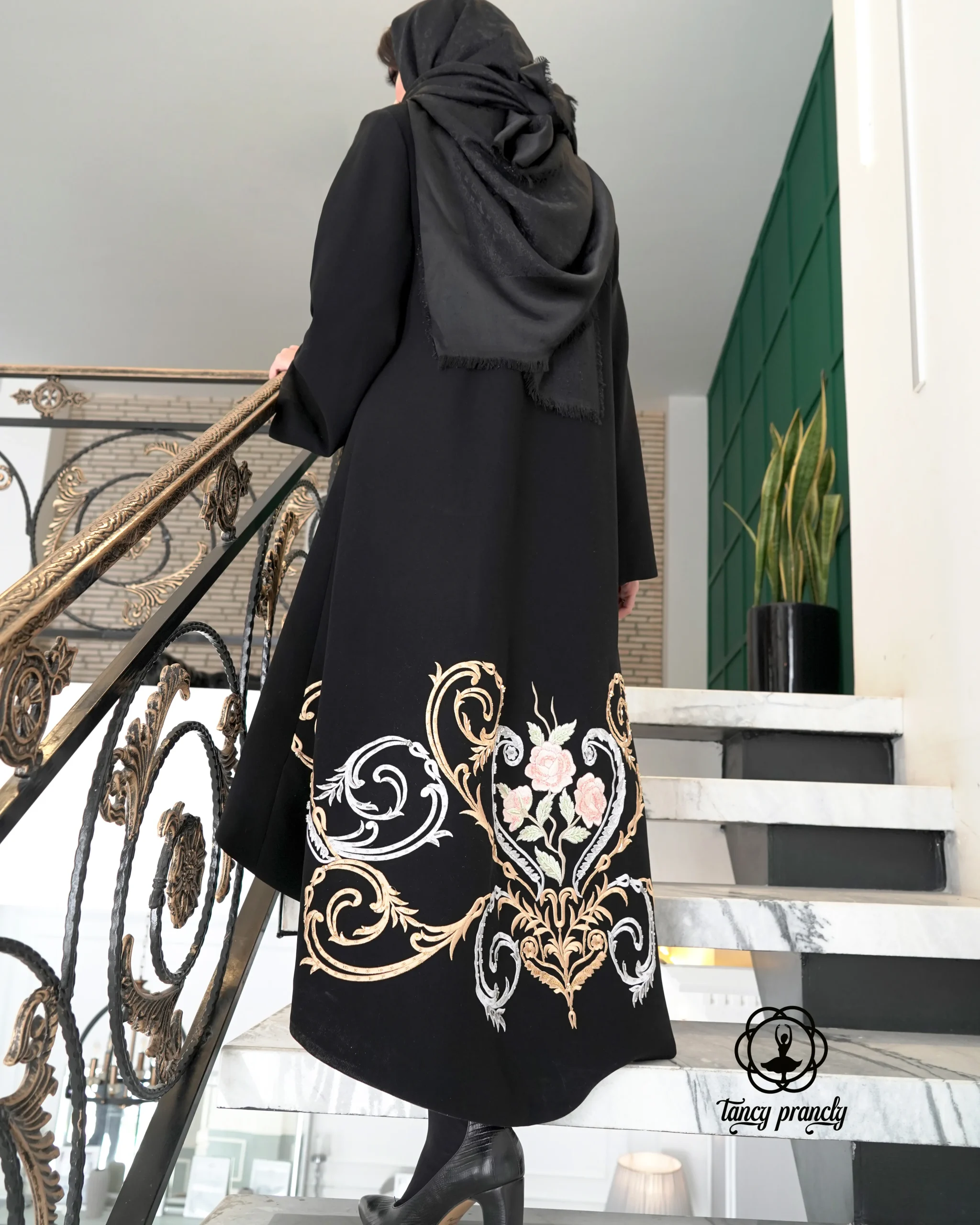 مانتو یا پالتو لوکس همراه با پلدوزی و جواهر دوزی نفیس